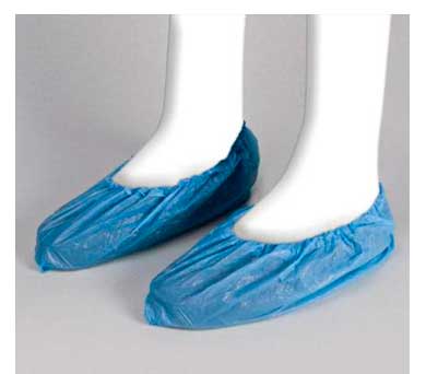 Patucos de un solo uso de plástico CPE de color azul, con textura en la superficie para augmentar el agarre.